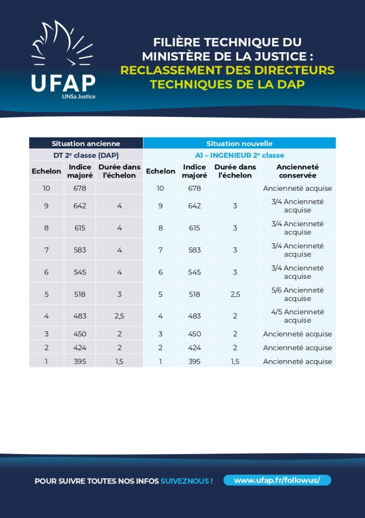 Dans le cadre de la création de la filière technique, les directeurs techniques de la DAP vont être reclassés dans le corps des ingénieurs de la DAP comme indiqué dans le flyer en pièce jointe. Ce reclassement se fera rétroactivement au 1er janvier 2026.