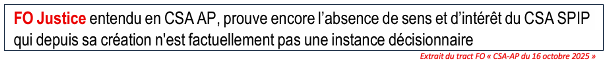 FO Justice, fidèle à son habitude, reste muette durant le CSA SPIP, se désintéressant de tout et se gardant d’écouter les débats puis tente de les défendre en CSA AP !